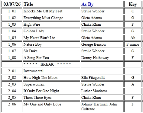 | Listed In Set Order (all songs) |